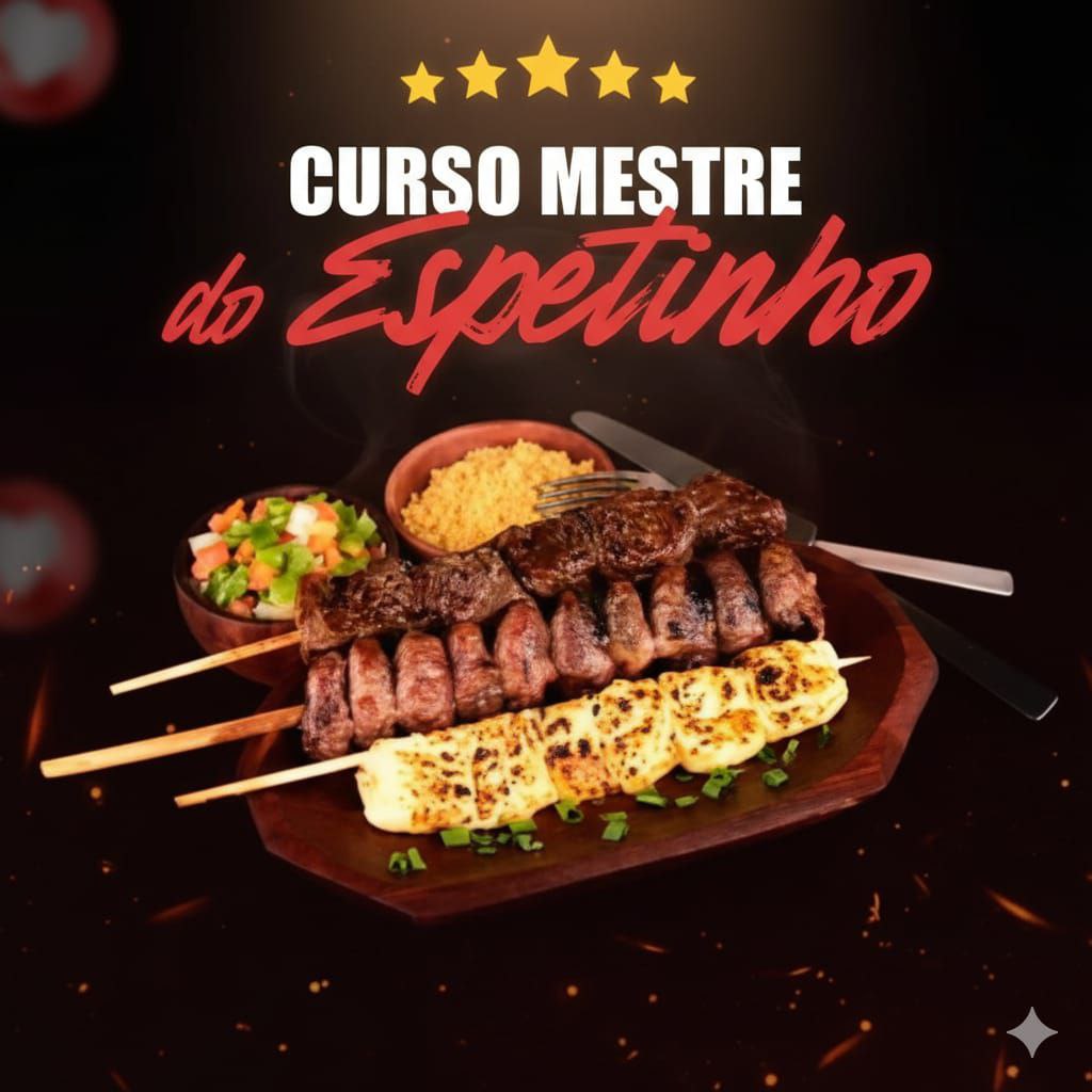 Nosso curso "Mestre do Espetinho" é a chave para dominar a arte do churrasco. Veja o que oferecemos: